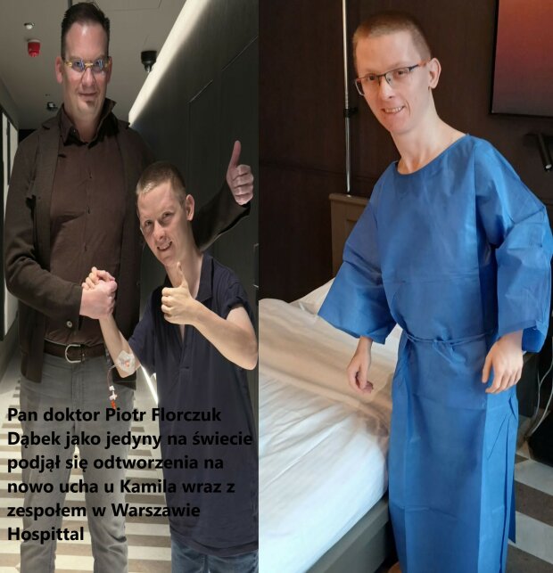 Rekonstrukcja była możliwa dzięki pracy wielu osób. Na czele zespołu stał dr Piotr Florczuk-Dąbek – specjalista rekonstrukcji ucha i tkanek, jedyny lekarz na świecie, który zgodził się wykonać tak skomplikowaną reoperację. W zabiegu uczestniczył również współoperator dr Paweł Dybciak, anestezjolodzy, instrumentariuszki oraz cały personel bloku operacyjnego. Jak podkreśla Kamil, każdy z nich odegrał kluczową rolę w tym wyjątkowym sukcesie.